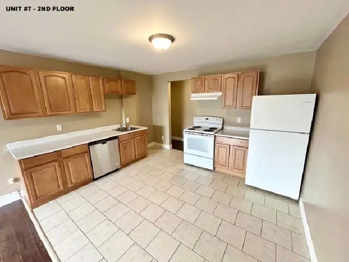 UNIT 7 - Located on the 2nd floor, open-concept living areas (living, dining and kitchen), good sized living room, designated dining area, light paint throughout, modern light fixtures, full tub surround with tiled backsplash, designated storage room and 1 parking space.
