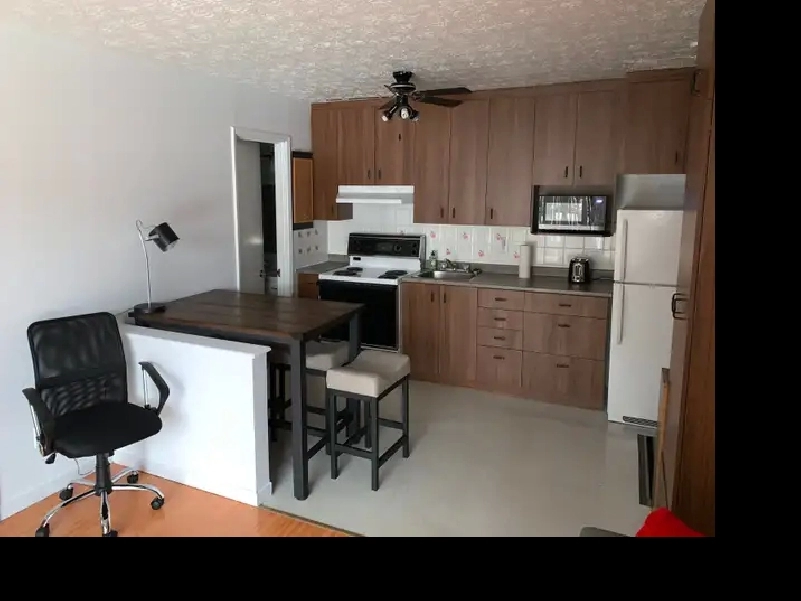 Le logement situé au sous-sol est fourni avec l’électricité, le chauffage, l’eau chaude, la cuisinière, le frigo et un espace de rangement.