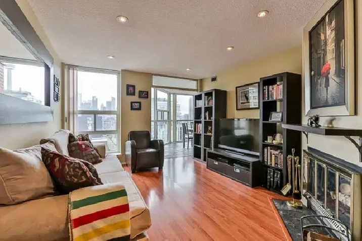 A spacious 1000sq.ft. Penthouse Suite: 2 Bedroom 2 BathRm Den Parking Cozy Fireplace with SE exposure overlooking downtown and CN tower. Split layout with ensuite bathrooms, renovated kitchen and ensuite storage. Building amenities include a private park with BBQs and picnic areas, indoor and outdoor swimming pools, 4 squash courts, library, theater, newly renovated gym, and entertainment areas. Prime location, tucked in from the main street and only steps from the King and Bathurst Streetcars, bustling entertainment areas, shopping and plenty of excellent bars & restaurants. Please call 416 830 1164 or email [email protected] to schedule an appointment.