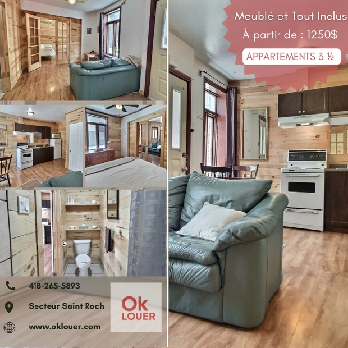 APPARTEMENT 1 CHAMBRE 3 1/2 MEUBLÉ-TOUT INCLUS, CENTRE VILLE