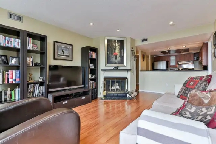 A spacious 1000sq.ft. Penthouse Suite: 2 Bedroom 2 BathRm Den Parking Cozy Fireplace with SE exposure overlooking downtown and CN tower. Split layout with ensuite bathrooms, renovated kitchen and ensuite storage. Building amenities include a private park with BBQs and picnic areas, indoor and outdoor swimming pools, 4 squash courts, library, theater, newly renovated gym, and entertainment areas. Prime location, tucked in from the main street and only steps from the King and Bathurst Streetcars, bustling entertainment areas, shopping and plenty of excellent bars & restaurants. Please call 416 830 1164 or email [email protected] to schedule an appointment.