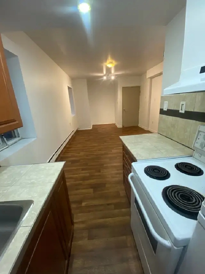 -Full size fridge and stove, plenty of cupboards, wood laminate floors, large windows with blinds included.