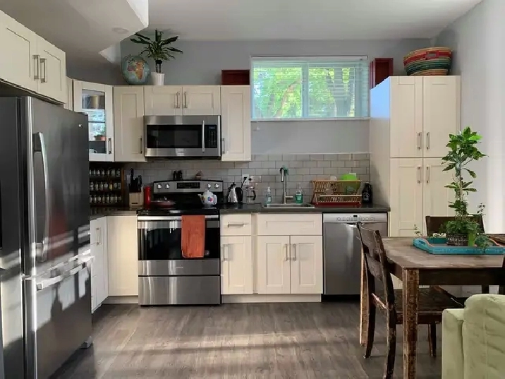 Two-bedroom unfurnished legal basement suite in a quiet neighborhood close to Broadway Avenue available December 1. Close to restaurants, pubs, grocery stores, parks and bus routes 1, 6, 13, 8 and 19 to U of S, Downtown and Centre/Market Mall. Kitchen has large pantry and 4 stainless steel appliances. The bathroom has a tub/shower, in-floor heating and separate laundry. Very bright space with 9-foot-high ceilings, large windows, side entrance and ample street parking with an exterior plugin. No smoking/vaping, strictly no pets, or parties. Single occupant preferred, maximum 2 people. Not suitable for families with children. $1450.00 a month plus power, the suite has a separate electrical meter. 1-year lease with one month damage deposit required.