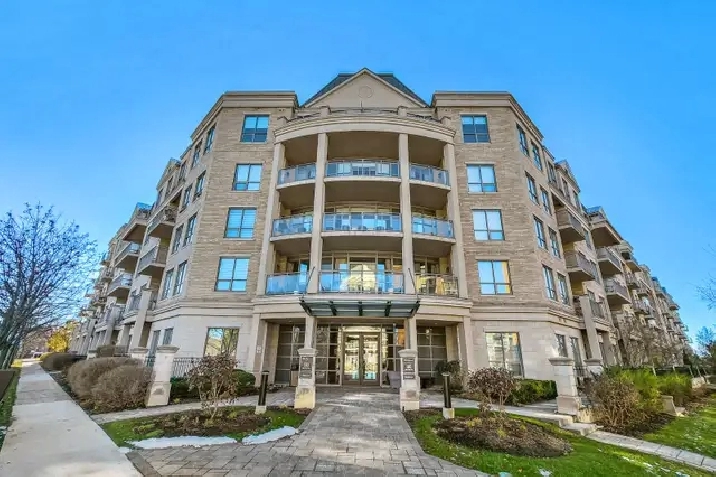 Welcome to The Ridgewood-where luxury living meets unmatched convenience in the heart of Aurora! This beautifully appointed 2 Bedroom Den suite offers approximately 1,086 sq. ft. of refined living space within one of Aurora's most prestigious and sought-after condominium residences. Freshly painted and truly move-in ready, the suite showcases elegant hardwood floors, custom California shutters, and built-in cabinetry that enhances both style and functionality. The bright, open-concept living and dining area creates an inviting atmosphere, perfect for relaxing or entertaining. Step out onto your private balcony, an ideal retreat for morning coffee or evening unwinding, complete with lovely views that add a serene backdrop to your daily living. The modern kitchen is a highlight, featuring Quartz countertops, a granite sink, stylish backsplash, stainless-steel appliances, and a custom built-in pantry for added storage. The spacious primary bedroom offers comfort and sophistication with a 4-pc ensuite, including a double vanity, glass shower, and custom linen storage with a smartly integrated laundry nook. A well-sized second bedroom and versatile den-each outfitted with new custom closet organizers-provide excellent flexibility for guests, work, or additional storage. Residents enjoy exceptional lifestyle amenities, including an outdoor saltwater pool, a fully equipped gym, steam room, theatre room, party room, guest suite, and 24/7 concierge services. Perfectly situated close to transit, shopping, restaurants, parks, and top-rated schools, this suite offers the best of urban living in a peaceful residential setting. Experience comfort, convenience, and luxury-this beautifully updated suite is truly ready to welcome you home!