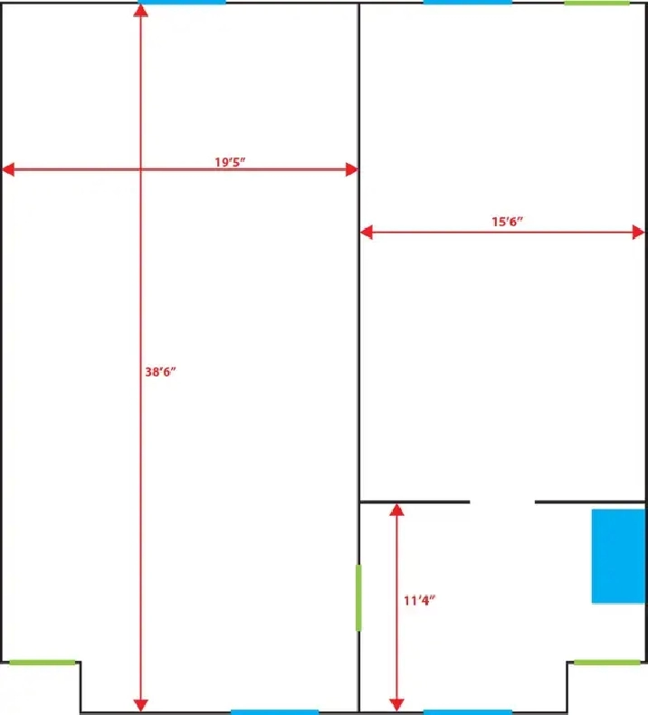 - Has an exterior door for entry plus 2 hallway access doors (one for each of the rooms)