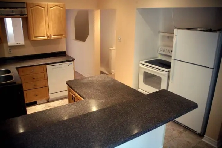 Very large renovated 2-bedroom apt on a quiet street in Little Italy (1000 sq ft). It is 2 levels of a house. Quiet, clean, close to transit, park, restaurants, gym. Hardwood and marble. Lots of light. Fridge, stove, dishwasher, clothes-washer & dryer (inside the unit), deck, large storage area. Rent includes hot water, heat and parking. Hydro is extra. Non-smoking. Available Nov 1. Douglas 613-697-9382.