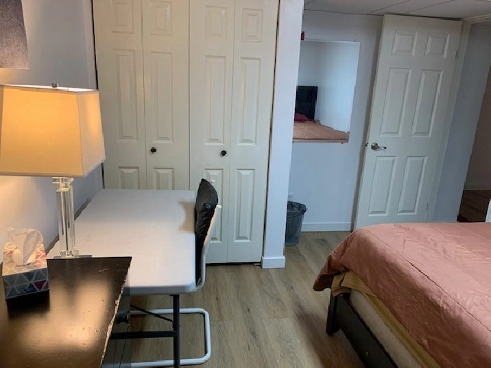 House has two shared bathrooms. All utilities included - hydro, water, wifi. Use of whole house. TV upstairs for gaming or share online subscription costs. 2 fridges (upstairs/downstairs), shared kitchen, extra large storage room for seasonal items, new washer/dryer. Air conditioning for summer. Very clean and quiet. A single car parking pad is at the back if car parking is needed.