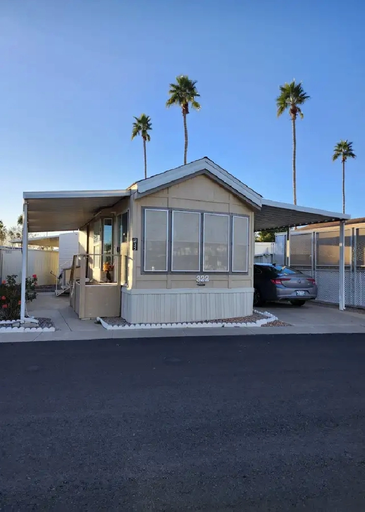 MESA, AZ Cavco 1994 Snowbird trailor ...well maintained w new roof..laminate floor...Open "bright" kitchen, living room, dinig area. and bath; bedroom with Queen bed, plus 10 ft mirrored closet. Bathroom with walk in shower. Hallway has 9 feet of storage and pantry. A/C. Pets allowed. monthly pad rent in Saguaro Sun Park. Asking 21,000.00 ..Text or call me at 204-330-9614 with any questions. leave message.