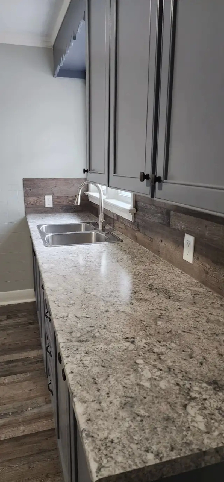 Kitchen has been renovated with new sink and counter top and all new stainless steel appliances.