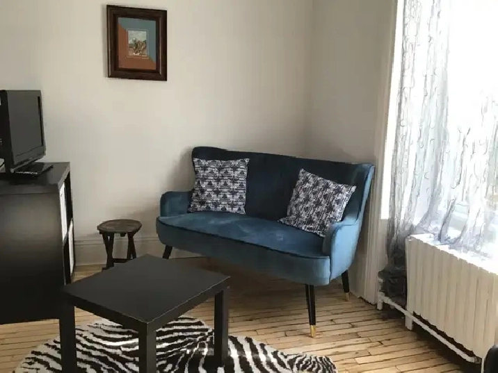 Studio meublé; incluant tout les accessoires de cuisine, literie etc. Immeuble tranquille dans un quartier près de tous les services. Chauffé; eau chaude, électricité et internet inclus.