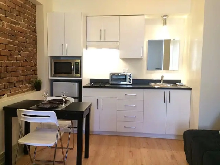 Charmant studio meublé complètement rénové sur le Plateau Mont-Royal, à 2 pas du parc de Lorimier! Murs de briques, bien décoré, complètement équipé. Propriétaire habitant au rez-de-chaussée. 400 pieds carrés