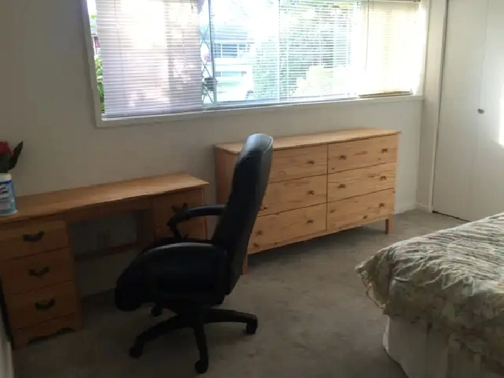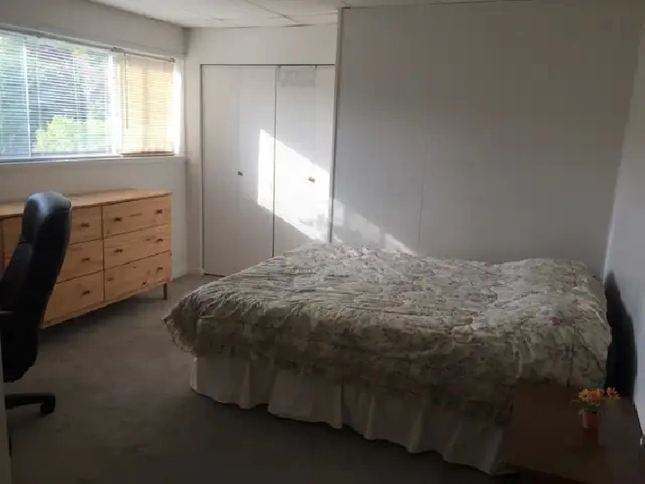 It's perfectly located neighborhood, in a quiet family-oriented area a very bright, fully furnished two-bedroom suite. The very large bedroom with a king bed is for rent, the other bedroom is postgraduate PhD girl student and she is at university most of the time. The place has lots of windows almost garden level and is for rent April first.