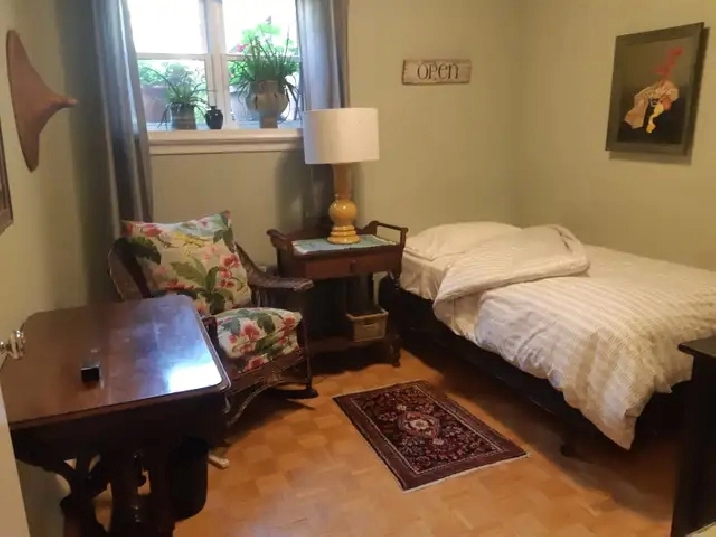 Room for rent in my apartment, suitable for a professional working weekly in Toronto; a medical student or nurse; a full-time University, ESL student; intern or working graduate seeking a comfortable, clean, secure room in my apartment home. I do not want a student or professional who works at home every day online. I am in a 3 storey walk-up apartment building. My apartment is beautiful, clean and comfortable. You share washroom and kitchen with me. I provide sheets, towels (you provide your own pillow, comforter). Pay laundry facility is on the same floor beside this unit. All utilities and WIFI are included in rental fee. The building is secure, clean and welcoming as is the garden.