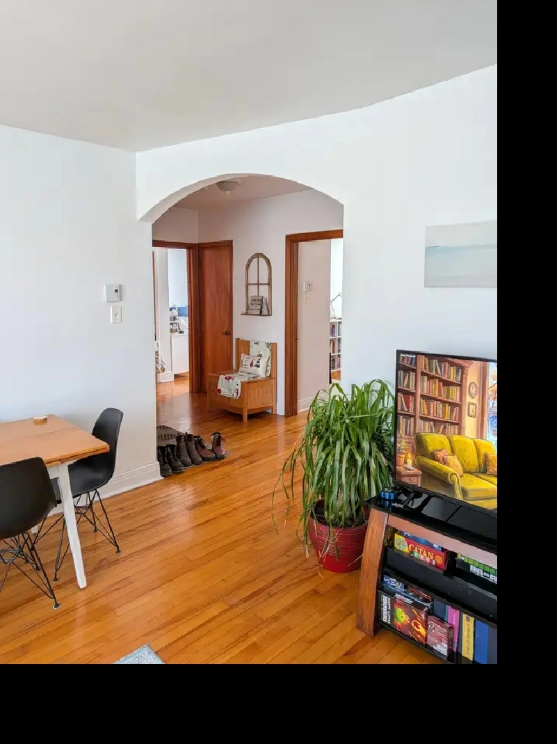 Big and sunny 5 1/2, spacious lobby with 2 closets, hardwood floors, 3 closed bedrooms with a window wardrobe in each bedroom, big kitchen with lots of storage, renovated kitchen cabinets, bright and spacious living room, washroom with ceramic floor, washer/dryer connections in the appartment, back balcony, a lot of natural light.